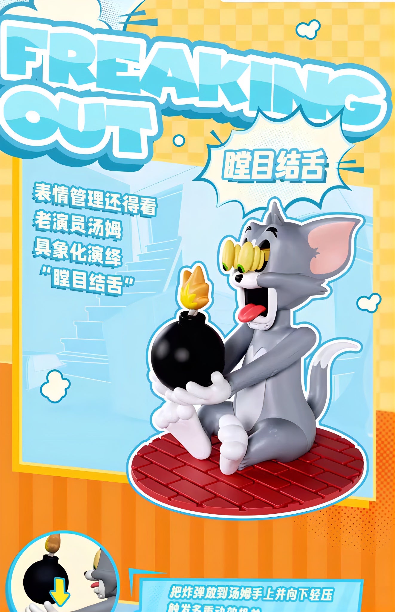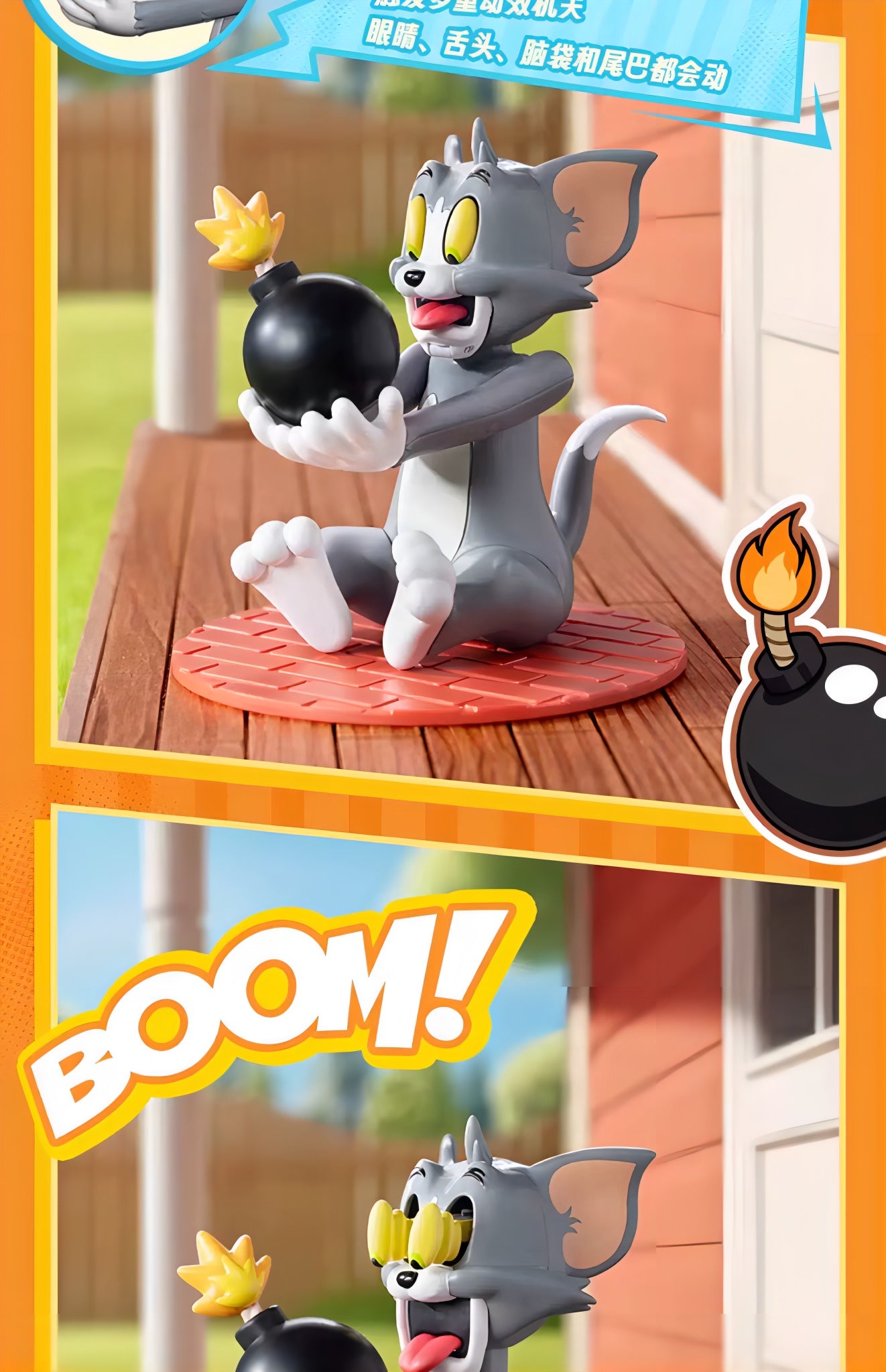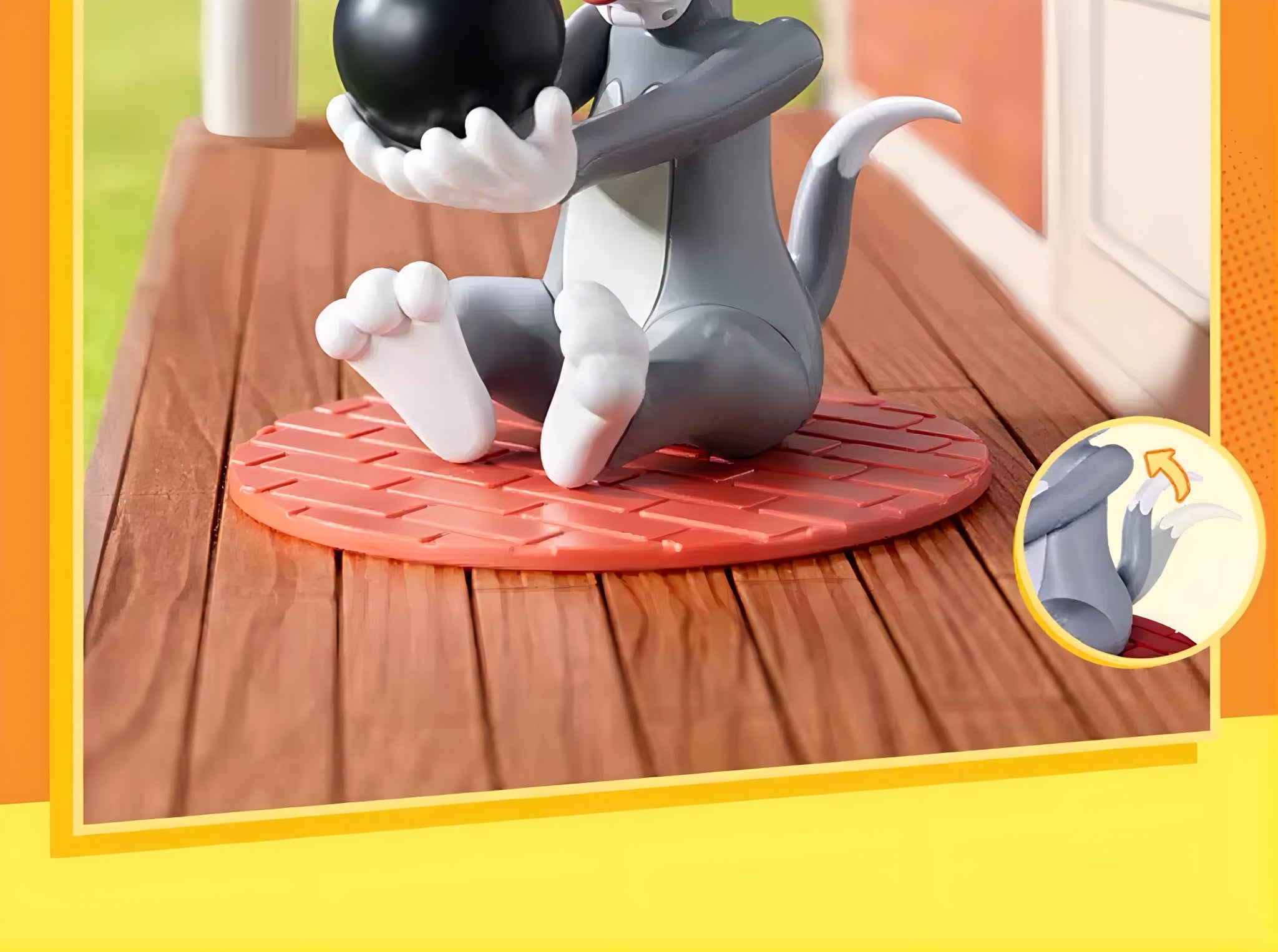 コミカルで可愛らしいトムの「不運な瞬間」を立体化した全高約8〜11.5cmのアクションフィギュア。爆弾を抱えて驚くトムなど、アニメのドタバタ劇を再現したデザインが魅力です。どのシーンが当たるかは開けてからのお楽しみ!