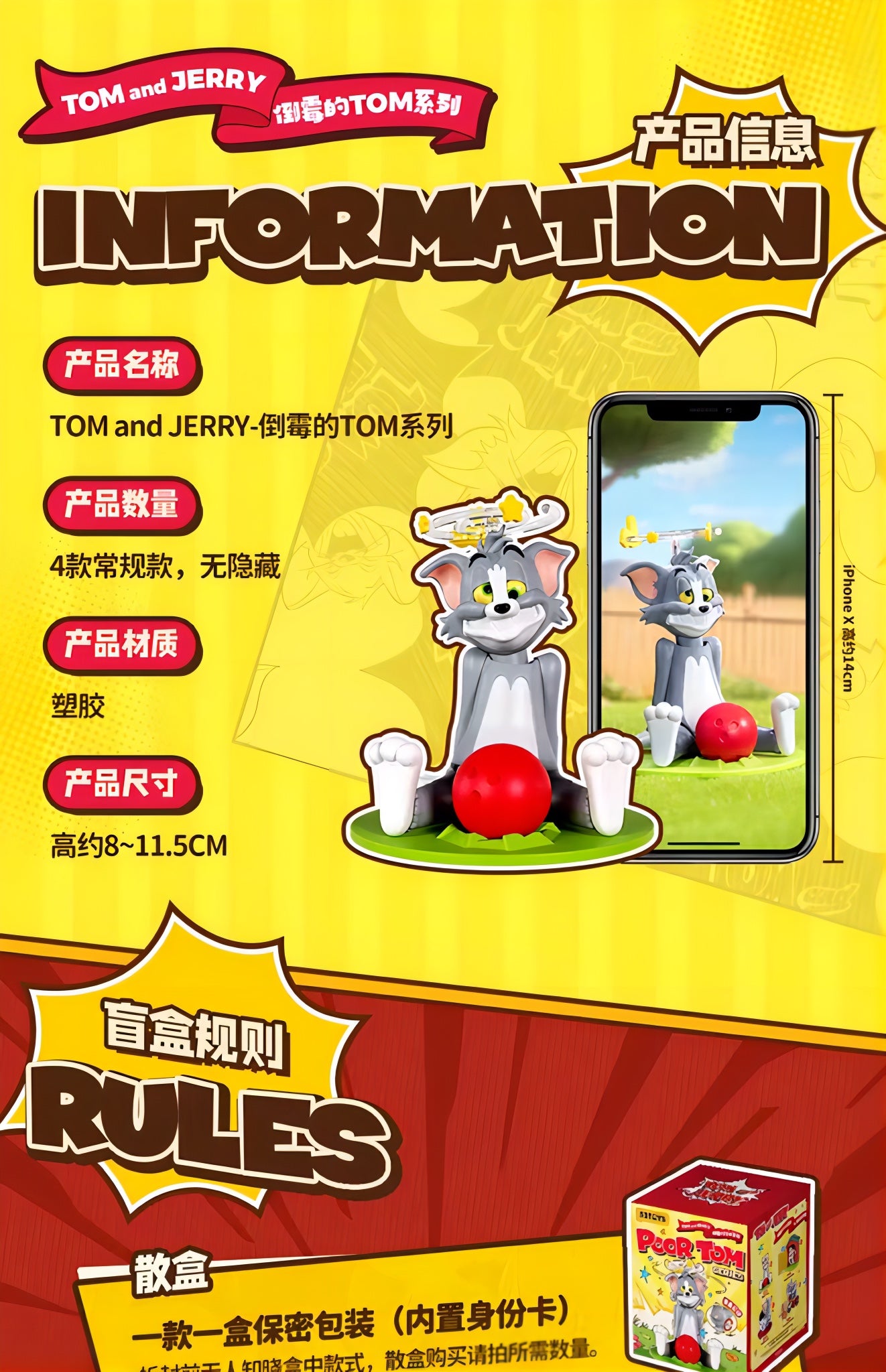 世界中で愛される名作アニメ『トムとジェリー』から、いたずら好きなジェリーにいつも振り回される“トム”をテーマにした「POOR TOM SERIES」が登場!52TOYSが手掛ける海外限定のブラインドボックスフィギュアです。