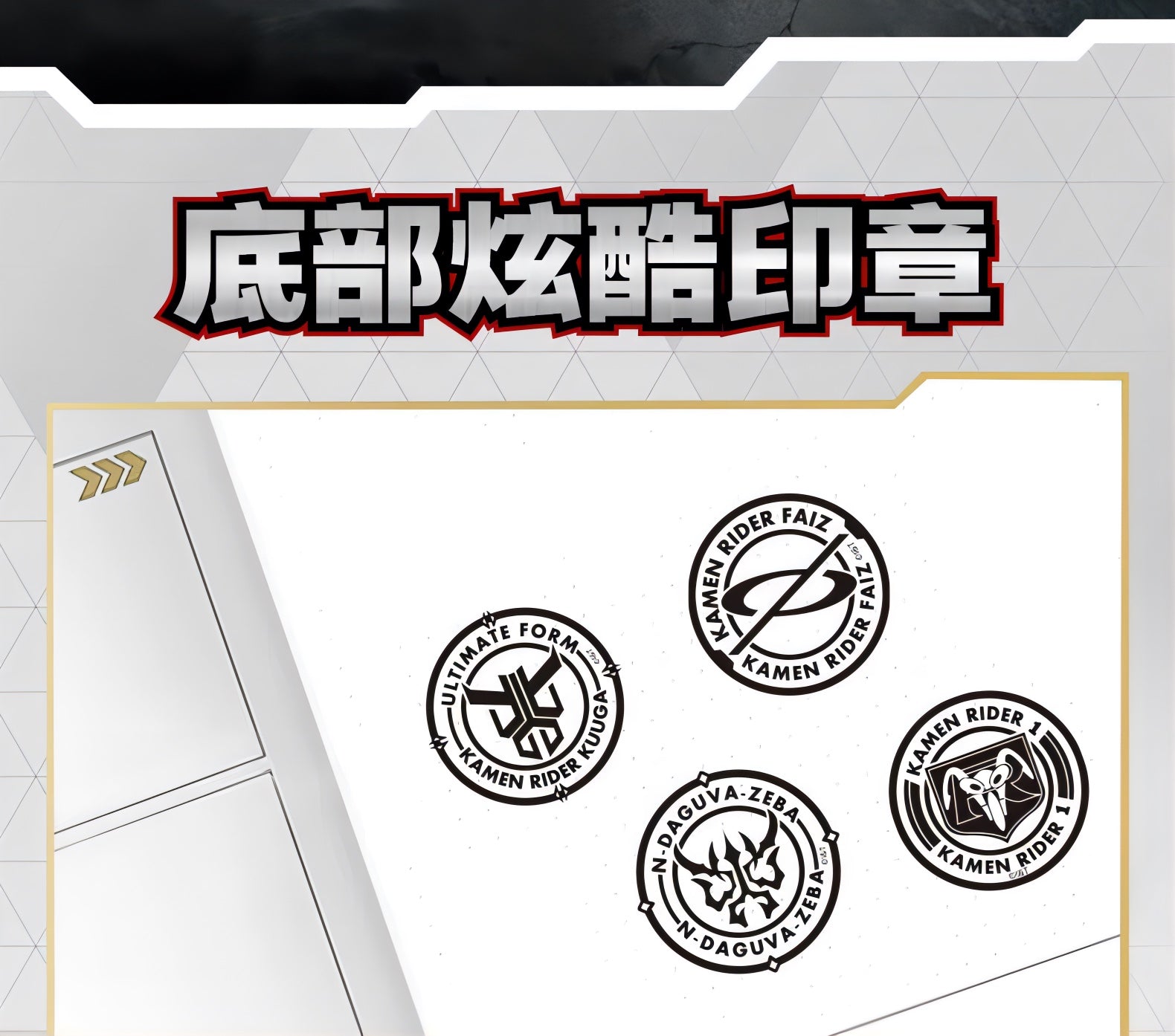 底面のスタンプ印面デザインもライダーごとに異なり、コレクション性も高いシリーズです。
