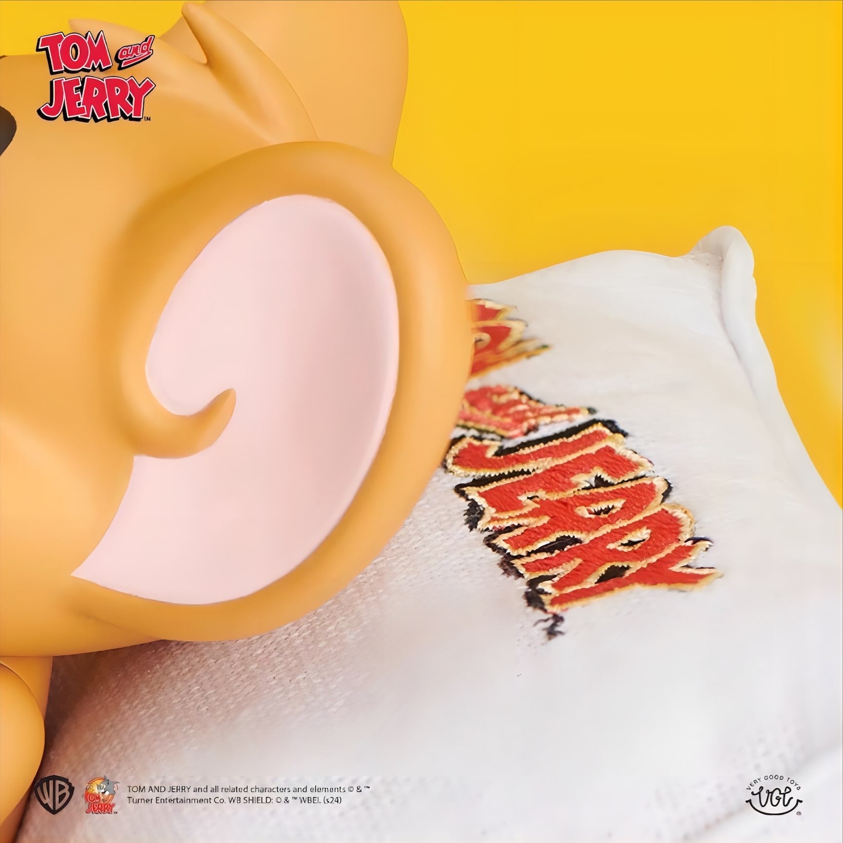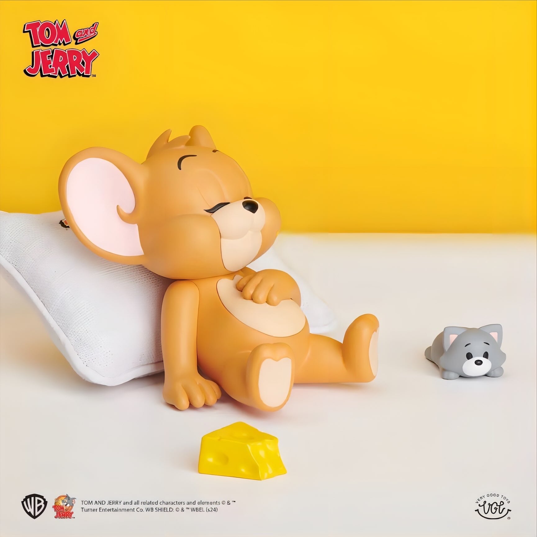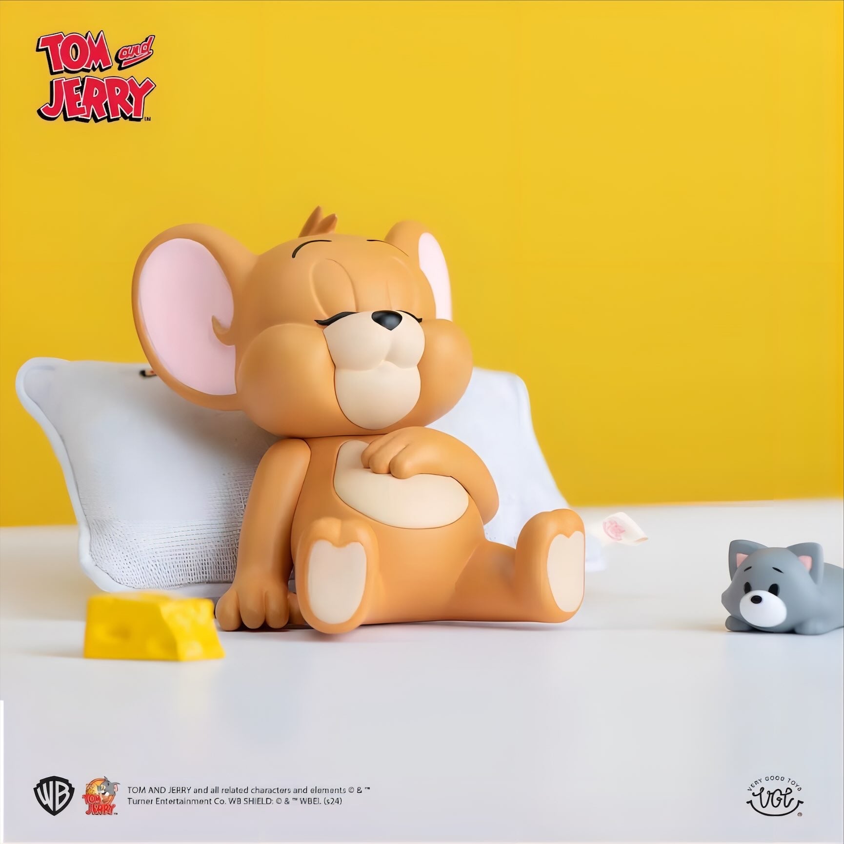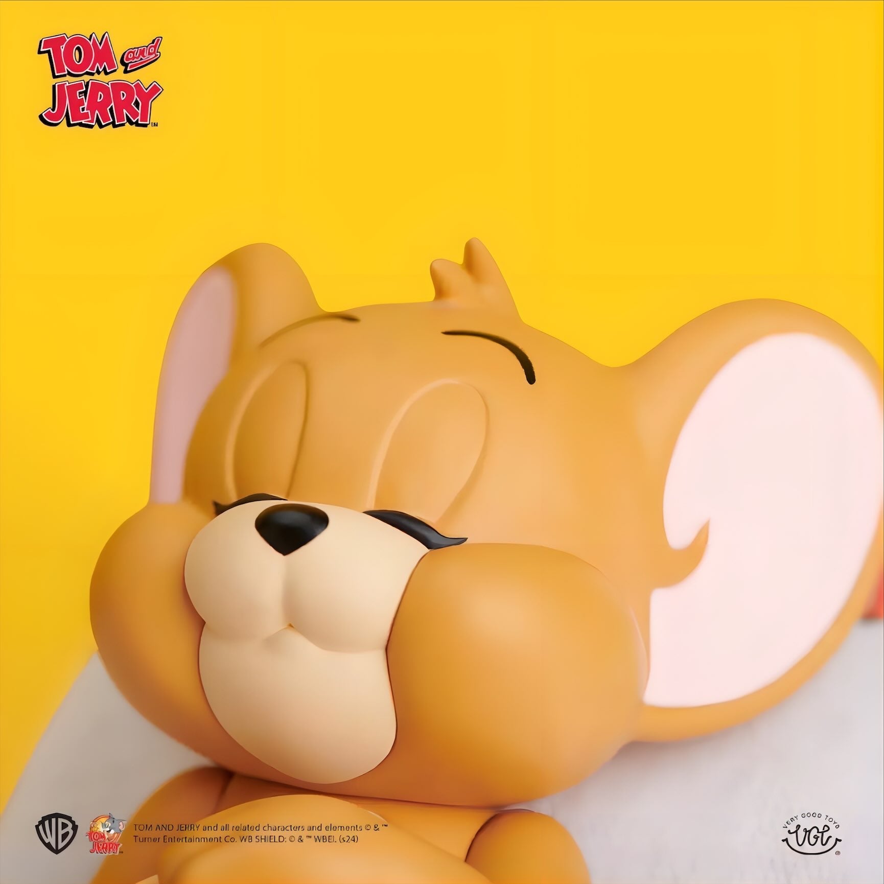 クッションにもたれておやすみしているジェリーの姿を、優しい表情と丸みのあるフォルムで立体化しています。