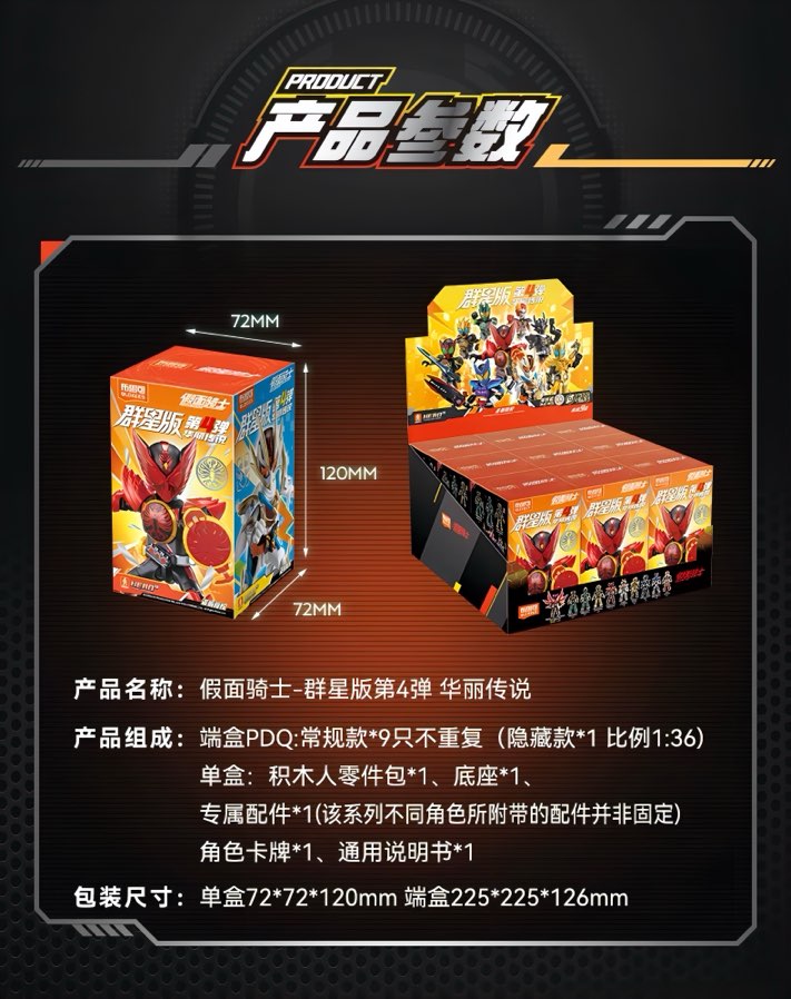 仮面ライダーの世界観を、組み立てて遊べるブロックフィギュアとして落とし込んだBLOKEESのエポックシリーズ。群星版 第4弾「華麗伝説」は、仮面ライダーオーズを中心に、個性の強いキャラクターが揃うラインナップで、飾っても遊んでも映える1弾です。