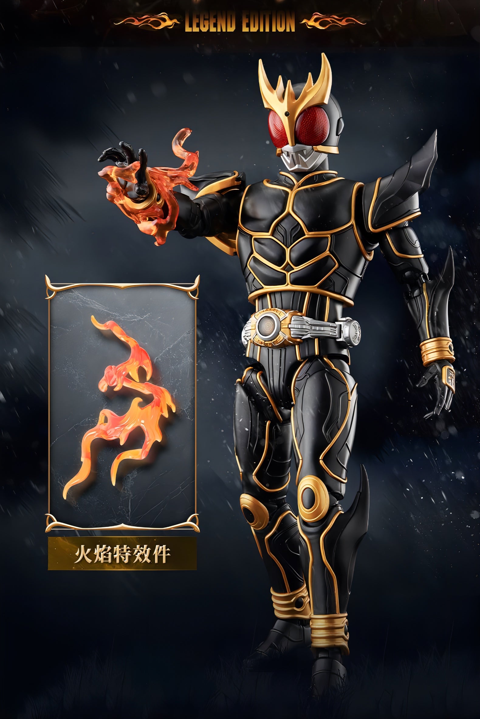 仮面ライダークウガ 究極形態を、迫力あるプロポーションで立体化したLEGEND EDITIONのアクションフィギュアです。組み立て式で、完成後は全身の可動域を活かして劇中を思わせるポージングが楽しめます。手首パーツの差し替えに加え、炎エフェクトや表情を変えられる瞳パーツも付属。